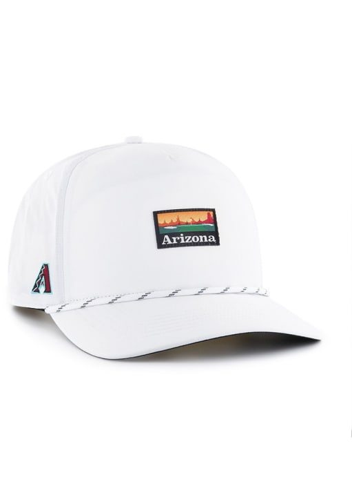 Product Details Product Details Fairway HitchFront script team NameRope across the billAdjustable closureSide 47 logoCOTTON/POLY BLENDCurved BillLow CrownStructuredWipe clean with cloth or cleaning kitImported Officially Licensed This Arizona Diamondbacks White Adjustable Hat features a team-centric golf design with performance Brrr fabric and rope across the visor.