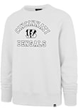 Head out in style with our Cincinnati Bengals White Varsity Arch Headline Crew Sweatshirt! This Bengals Long Sleeve Crew Sweatshirt features a screen print team logo on center chest. You'll be warm, comfortable and stylish as you head to class, the game or just out on the town in this Cincinnati Crew Sweatshirt.