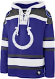 Stay in style while you cheer on the Colts in this Indianapolis Colts Blue Long Sleeve Lacer Fashion Hood! This Long Sleeve Fashion Hood features a midweight, fleece hood with a lace up placket, contrasting stripes and shoulders, and team graphics. It's designed for the ultimate comfort while cheering for Indianapolis Colts.
