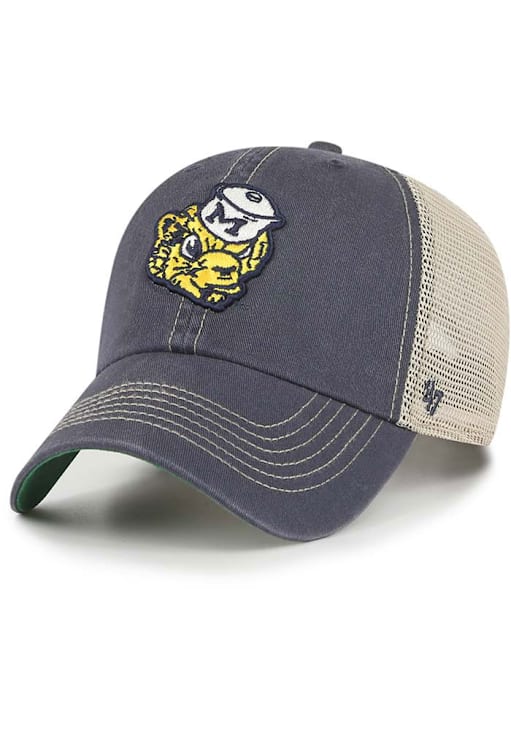Product Details Product Details 47 Trawler Clean Up styleRaised embroidery on frontMatching crown and visor with contrast stitchingContrast meshbackAdjustable ClosureCotton materialCottonCurved BillLow CrownUnstructuredWipe clean with cloth or cleaning kitImported Officially Licensed This Michigan Wolverines Blue Adjustable Hat features a front embroidered team logo.