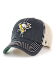 This Pittsburgh Penguins Black Adjustable Hat features a front embroidered team logo on a cotton unstructured crown with a contrast meshback, pre-curved visor and adjustable closure.