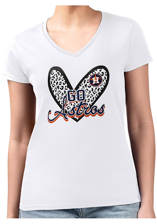 Let everyone know who you root for in this Houston Astros White Leopard Heart Fitted Design Short Sleeve T-Shirt! This Houston Short Sleeve Tee features a screen printed graphic.