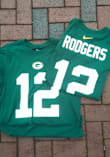 Show support for your favorite player in this Green Bay Packers Green Primetime Aaron Rodgers Short Sleeve Player Tee! This Player T Shirt features a lightweight, cotton material with a crew neckline and screen printed team and player graphics on the front and back, so everyone will know you cheer for Green Bay, Aaron Rodgers! This is the perfect Packers Player Tee for wearing from every day to game day. Go Packers!