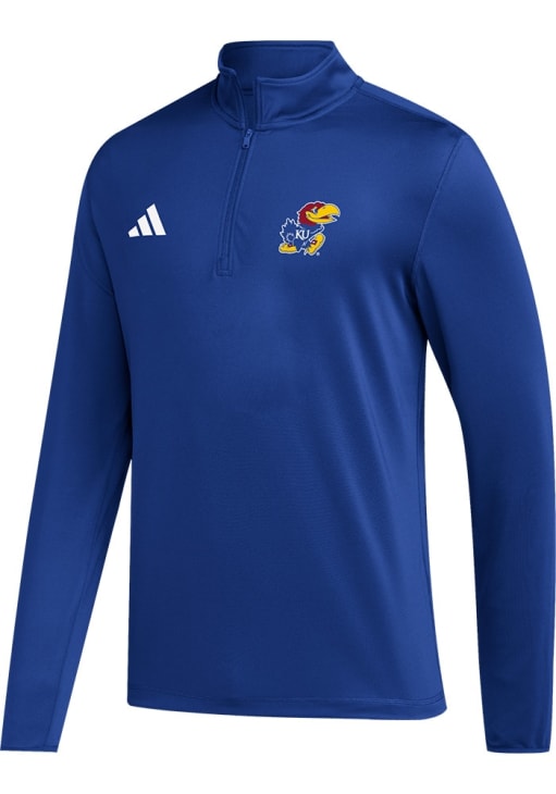 You'll definitely want this Kansas Jayhawks Long Sleeve Qtr Zip Pullover to keep you warm and dry as you show your Jayhawks pride. This Long Sleeve Pullover features a primary team logo on on front left chest with Adidas logo on the right. This Kansas Jayhawks Long Sleeve Qtr Zip Pullover perfect for every day wear.