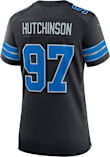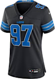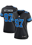 Feel like one of the team with this Detroit Lions Womens Black Alt Football Jersey. Wear this Jersey to the next tailgate or game for your Lions. With a screen printed number on the chest, team decorations, and screen printed player name and number on the back, this Womens Football Jersey is a great way to show your team spirit in style.