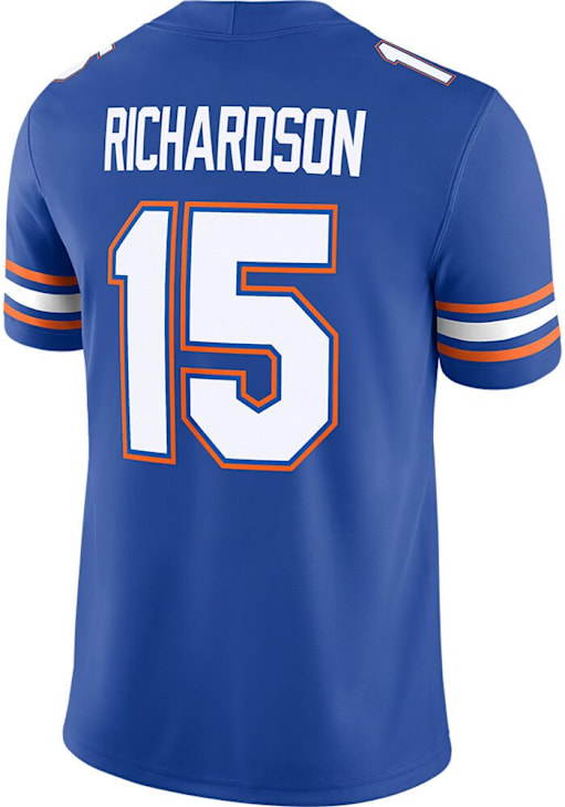 Get a piece of the Florida Gators action with this Florida Gators Blue Anthony Richardson Football Anthony Richardson Game Football Jersey. You'll look like one of the team as you wear this Jersey to support your Gators. With a number on front and number with name on back, this Football Jersey makes a great addition to any Gators fan's closet.