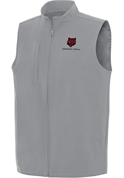 This Arkansas State Red Wolves Grey Vest is the perfect way to show your Red Wolves allegiance without the bulk of a heavy coat. Enjoy the next tailgate or cheer from the stands in this Ark State Red Wolves Regard Sleeveless Jacket, which features a right chest welt pocket with hidden zipper. Go Red Wolves!