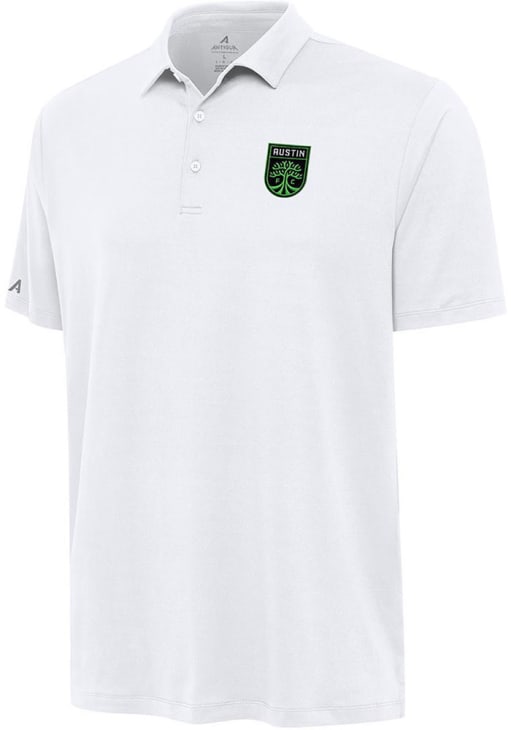 Showcase your Austin FC pride at the office or on the golf course in this Antigua White Reprocess Recycled Short Sleeve Polo! You'll look sharp in this Austin FC Polo, which features a materials made from recycled plastic. This Austin FC White Reprocess Recycled Short Sleeve Polo Shirt is the perfect update to your professional wardrobe.