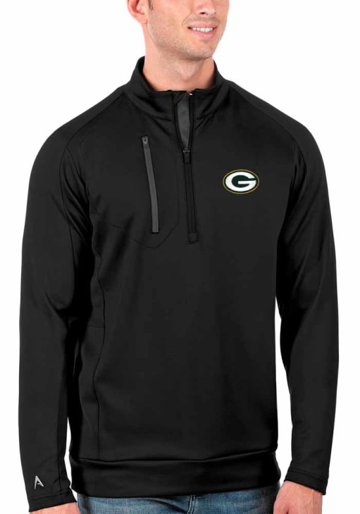 Antigua Green Bay Packers Mens Black Generation Long Sleeve Qtr Zip Pullover