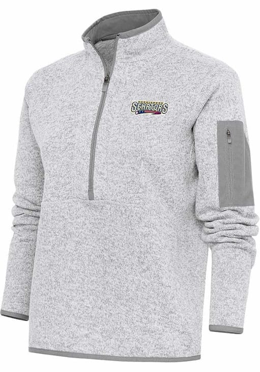Stay warm and show your Senators spirit in this Harrisburg Senators Long Sleeve Qtr Zip. This Womens Grey Fortune Long Sleeve Pullover features a coverstitch and binding at collar, cuff, and bottom hem. You'll want to wear this Harrisburg Senators Long Sleeve Qtr Zip every day.