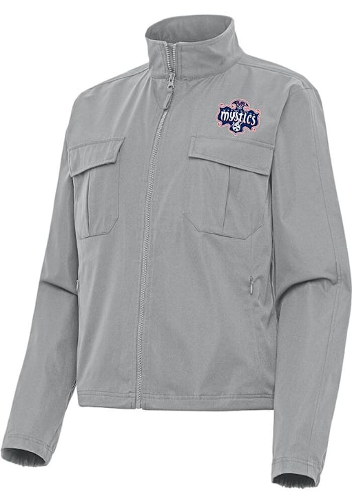 Keep the chill out with this Washington Mystics Womens Grey Even Par Light Weight Jacket! Cheer on the Mystics in this Mystics Light Weight Jacket. With a double layer collar and flat patch chest pockets, you won't want to be caught without this Light Weight Jacket on gameday.