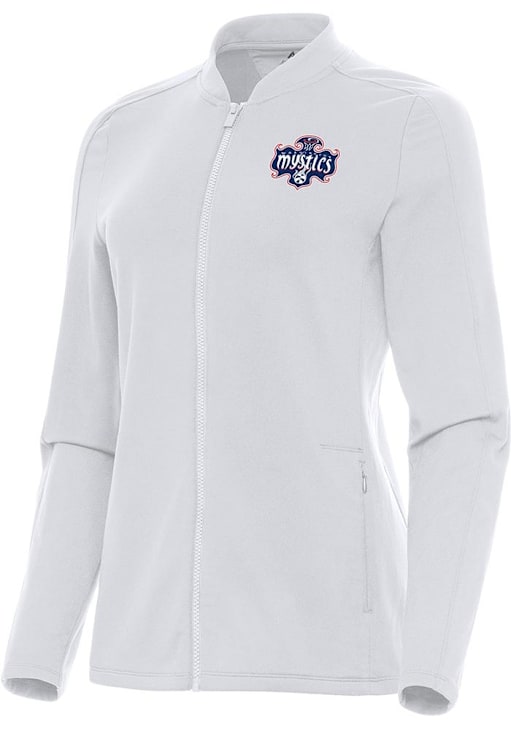 Keep the chill out with this Washington Mystics Womens White Continual Light Weight Jacket! Cheer on the Mystics in this Mystics Light Weight Jacket. With a sleek lines and a blade collar, you won't want to be caught without this Light Weight Jacket on gameday.
