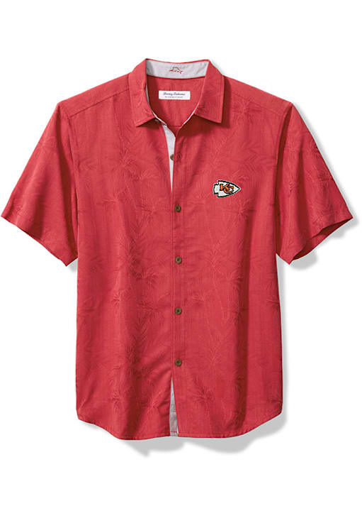 You'll look sharp for any occasion in this Kansas City Chiefs Short Sleeve Dress Shirt! Let your Chiefs pride show in this Red Sport Coconut Point Palm Vista Button Down Shirt. This Sport Coconut Point Palm Vista KC Chiefs Dress Shirt is perfect for showing your Chiefs pride at the office or in any other professional setting. Featuring a team logo embroidered on left chest, tonal tropical print, this Kansas City Chiefs Dress Shirt has a subtle touch of fan support.