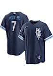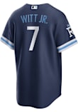 This Kansas City Royals Jersey is designed to give an on-field look at a superior value. The Navy Blue Baseball Jersey delivers comfort and breathability in a lighter wicking fabric for a genuine game-ready look. You'll be the best-looking fan in the stadium when you pull on this KC Royals Jersey, which features a twill team graphics across the front, replica team markings, MLB logo on back below the neck, locker tag at left lower hem, Swoosh at right chest. Go Royals!