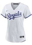 This Womens Kansas City Royals Replica Jersey is designed to give an on-field look at a superior value. This White Baseball Jersey delivers comfort and breathability in a lighter wicking fabric for a genuine game-ready look. You'll be the best-looking fan in the stadium when you pull on this KC Royals Replica Jersey, which features a twill team graphics across the front, replica team markings, MLB logo on back below the neck, locker tag at left lower hem, Swoosh at right chest. Go Royals!
