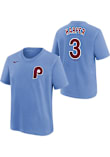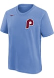 Let your little Phillies fan show support for their favorite player in this Youth Bryce Harper Short Sleeve Player Tee. This Light Blue Short Sleeve Player T-Shirt features a screen printed team wordmark across the front, player name and number on the back, Swoosh design on the right chest.