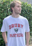 Show off your team pride in this Drury Panthers White Distressed Short Sleeve T Shirt! This Drury Short Sleeve Tee features a distressed screen print of Drury arched over panther logo with Panthers beneath on center chest. Make sure everyone knows you root for the Panthers with this White Drury T Shirt. Go Panthers!