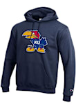 Champion Kansas Jayhawks Mens Navy Blue Big Logo Long Sleeve Hoodie