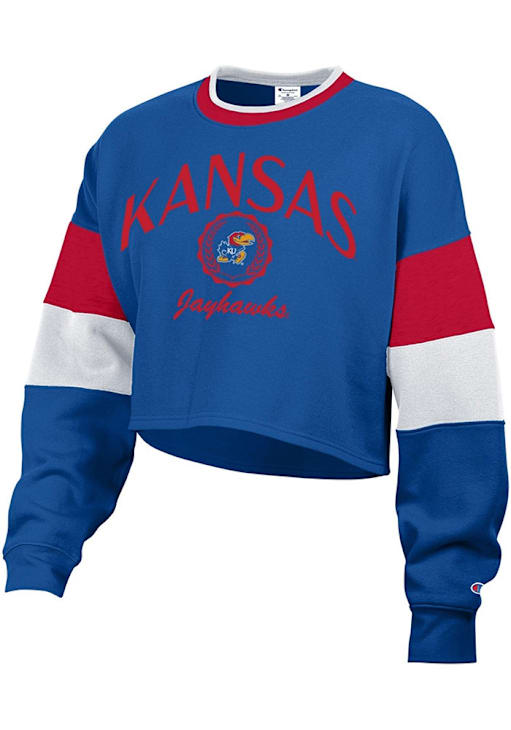 Make your way to the big game in this Kansas JayhawksWomens Blue Fresh Fly Crew Sweatshirt! This Jayhawks Long Sleeve Sweatshirt features a screenprint team name and logo on center chest. Stay warm and comfortable with this Womens KU Jayhawks Jayhawks Crew Sweatshirt.