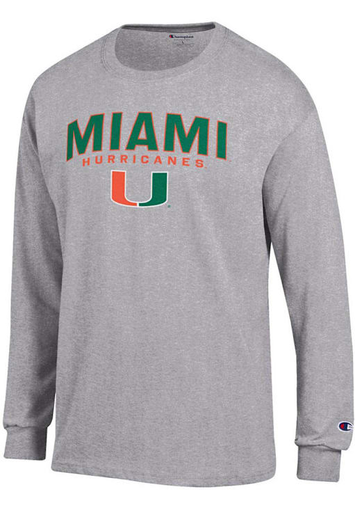 Show off your team pride in this Miami Hurricanes Grey Jersey Long Sleeve T Shirt! This Miami Long Sleeve Tee features a screen print team graphic on front chest. Make sure everyone knows you root for the Hurricanes with this Grey Miami T Shirt. Go Hurricanes!