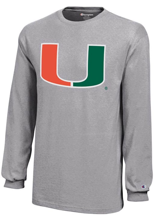 Size Chart for Champion Miami Hurricanes Youth Grey Core Long Sleeve T-Shirt