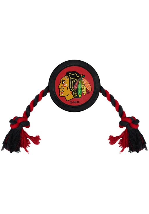 Product Details Product Details Approximately 14" Long (including rope)Puck 3" widePrinted team logoTeam-colored ropePromotes good canine dental health Officially Licensed Entertain your pet with this Chicago Blackhawks Hockey Puck Pet Toy. Your pet will love playing with this Chicago Blackhawks Blackhawks Pet Toy, which features a team logo on team color background.