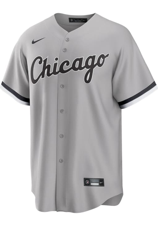 This Chicago White Sox Jersey is designed to give an on-field look at a superior value. The Grey Baseball Jersey delivers comfort and breathability in a lighter wicking fabric for a genuine game-ready look. You'll be the best-looking fan in the stadium when you pull on this White Sox Jersey, which features a polyester, jersey material with a button up front and team graphics on the chest. Go White Sox!!