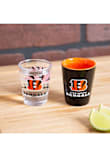 Product Details Product Details Set of 2 glassesEach holds 2ozTeam logos and colorsMakes a great gift Officially Licensed Toss one back with this Cincinnati Bengals 2oz 4 Piece Set Shot Glass. This Shot Glass features a four shot glasses with team logo and team colors and will make a great addition to any Bengals fan's collection. Go Bengals!!