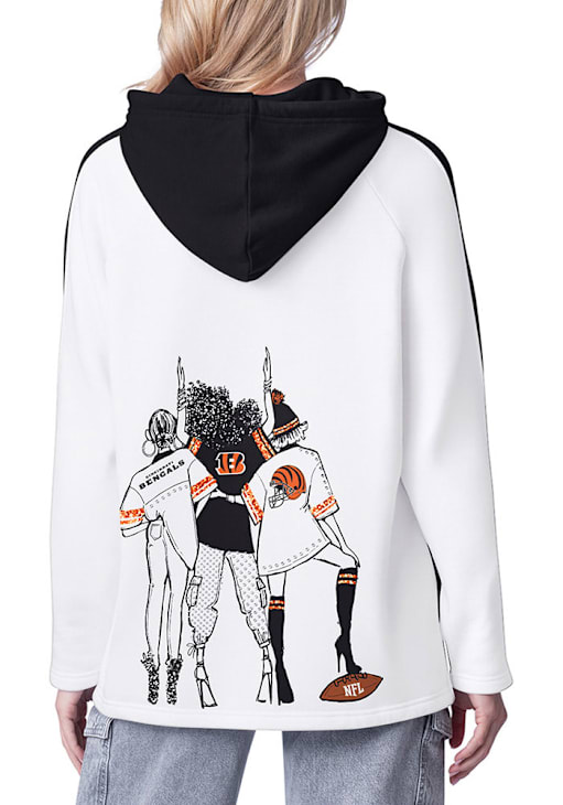 Wear your Bengals spirit with pride in this Cincinnati Bengals Long Sleeve Hoodie! Fight off the chill in this Cincinnati Womens Black Double Score Hooded Sweatshirt. This Bengals Long Sleeve Hoodie features team logo on left chest with fashion illustration on center back.