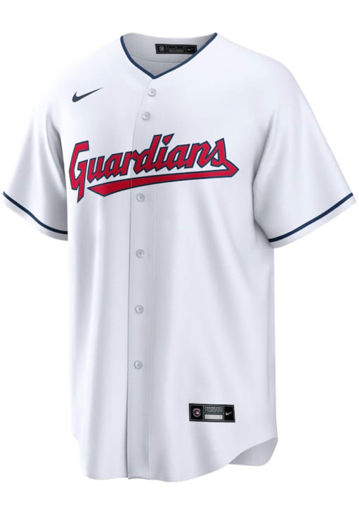This Cleveland Guardians Jersey is designed to give an on-field look at a superior value. The White Baseball Jersey delivers comfort and breathability in a lighter wicking fabric for a genuine game-ready look. You'll be the best-looking fan in the stadium when you pull on this Cleveland Guardians Jersey, which features a polyester, jersey material with a button up front and team graphics on the chest. Go Guardians!!