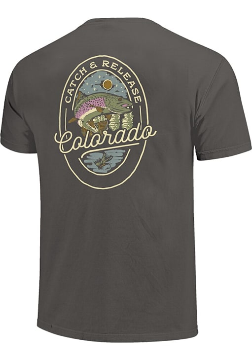 Support your Colorado in this Charcoal Short Sleeve Fashion Tee! This Catch and Release Trout Fashion T Shirt features a screen printed design. Be ready to shout "" when you wear this State of Colorado Short Sleeve Fashion T Shirt in the stadium or on the street.