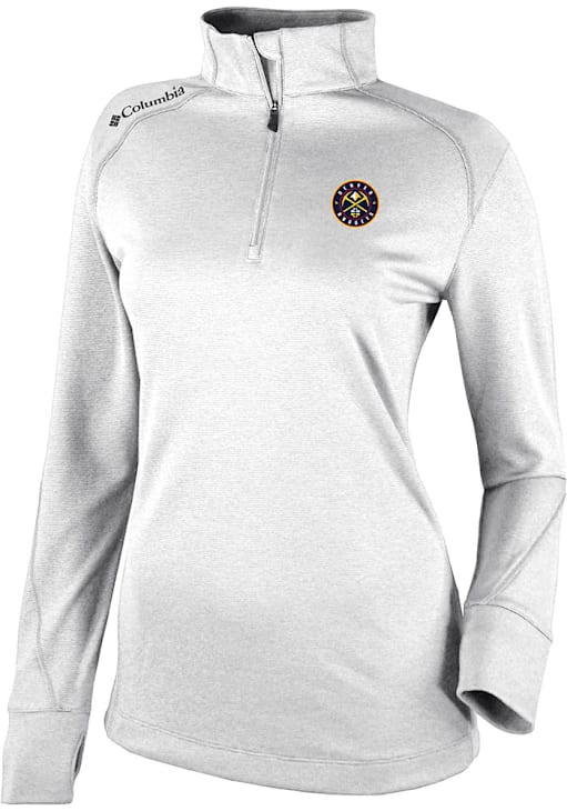 Stay warm and show your Nuggets spirit in this Denver Nuggets Long Sleeve Qtr Zip. This Womens White Heat Seal Omni Wick Shotgun 2.0 Long Sleeve Pullover features a heat seal team logo. You'll want to wear this Denver Nuggets Long Sleeve Qtr Zip every day.
