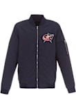 Add a layer to your gameday look with this Columbus Blue Jackets Navy Blue Nylon Bomber Light Weight Jacket! Stay warm in cooler weather as you cheer on the Blue Jackets in this great Light Weight Jacket. With a embroidered team logo, you'll be the most comfortable and stylish fan at the game.