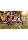 - Lightweight, portable folding chair with a sturdy aluminum frame