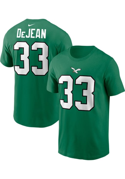 Show support for your favorite player in this Philadelphia Eagles Kelly Green Alt Cooper DeJean Short Sleeve Player Tee! This Player T Shirt features a Screen printed player name and number decoration with team marks. Crew neckline., so everyone will know you cheer for Philadelphia, Cooper DeJean! This is the perfect Eagles Player Tee for wearing from every day to game day. Go Eagles!