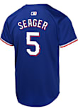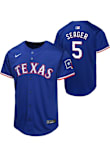 Your little Rangers fan will look great cheering on the Texas Rangers in this Blue Youth Baseball Jersey. This Texas Rangers Jersey features a twill team wordmark across the front, player name and number on the back, heat seal locker tag, and Swoosh design on right chest.