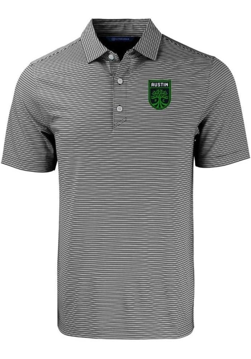 Showcase your Austin FC pride at the office or on the golf course in this Cutter and Buck Black Forge Double Stripe Short Sleeve Polo! You'll look sharp in this Austin FC Polo, which features a moisture wicking material. This Austin FC Black Forge Double Stripe Short Sleeve Polo Shirt is the perfect update to your professional wardrobe.