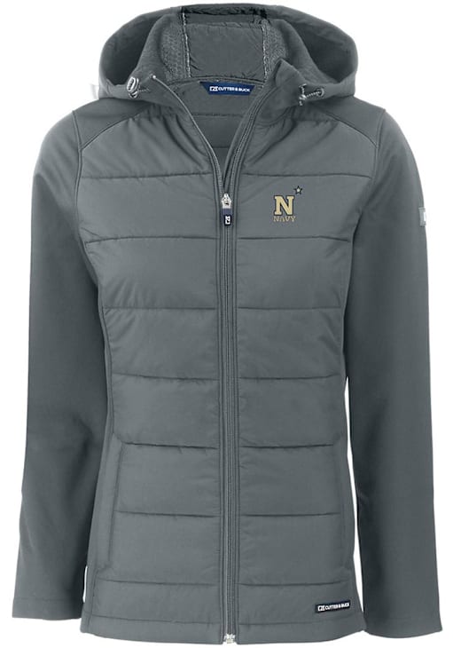 Keep the chill out with this Navy Midshipmen Womens Grey Evoke Hood Heavy Weight Jacket! Cheer on the Midshipmen in this Navy Heavy Weight Jacket. With a 100% recycled polyester bonded honeycomb softshell, you won't want to be caught without this Heavy Weight Jacket on gameday.