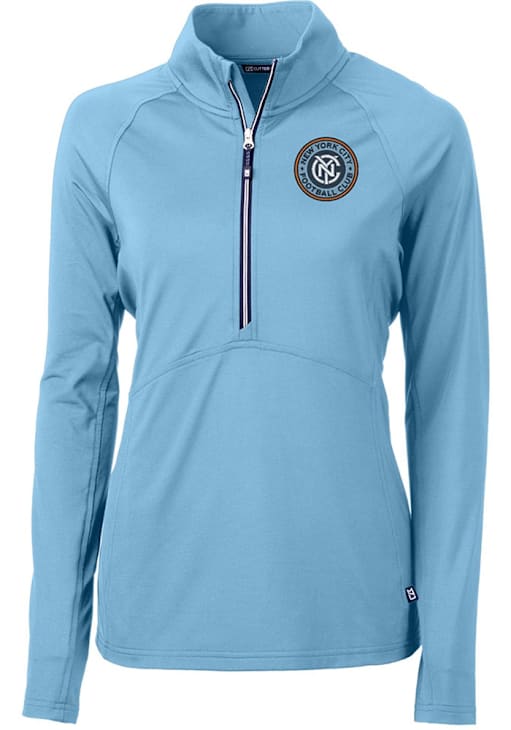 Show your NYC FC spirit in this New York City FC Long Sleeve Qtr Zip. This Womens Light Blue Adapt Eco Long Sleeve Pullover features a embroidered team logo at left chest. You'll want to wear this New York City FC Long Sleeve Qtr Zip every day.