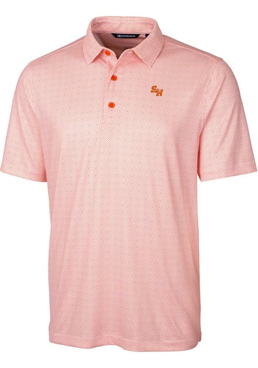 Showcase your Sam Houston State Bearkats pride at the office or on the golf course in this Cutter and Buck Orange Pike Double Dot Short Sleeve Polo! You'll look sharp in this Bearkats Polo, which features a team logo embroidered on left chest. This Sam Houston State Univesity Orange Pike Double Dot Short Sleeve Polo Shirt is the perfect update to your professional wardrobe.