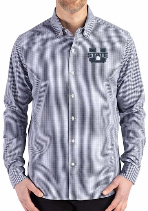 Add some Aggies spirit to your workwear with this Utah State Aggies Dress Shirt! Show your team pride with the Navy Blue Gingham LS Woven Long Sleeve Long Sleeve Button Down Shirt. This Long Sleeve Dress Shirt features a team logo. The Utah State Long Sleeve Button Down Shirt features great details for comfort and style.