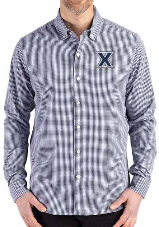 Add some Musketeers spirit to your workwear with this Xavier Musketeers Dress Shirt! Show your team pride with the Navy Blue Gingham LS Woven Long Sleeve Long Sleeve Button Down Shirt. This Long Sleeve Dress Shirt features a team logo. The Xavier Long Sleeve Button Down Shirt features great details for comfort and style.