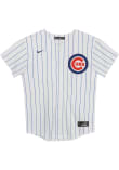 Hit your Chicago Cubs pride out of the park with this Chicago Cubs Boys White Home Game Jersey! You'll be the best-looking fan in the stadium when you pull on this Chicago Cubs Baseball Jersey, which features a twill team wordmark across the front, player name and number screen printed on the back, heat seal locker tag, and Swoosh design on right chest. Go Cubs!!