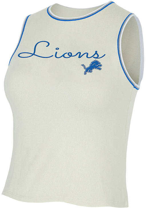Product Details Product Details Classic FitCrew NeckCrop Above HipImported Officially Licensed Give your tailgating look a cute update with this Detroit Lions Womens Tank Top! Look good and stay cool in this Ivory Kaki Sleeveless Shirt. This Detroit Tank Top features a center chest team name and logo.