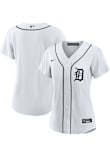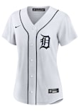 This Womens Detroit Tigers Replica Jersey is designed to give an on-field look at a superior value. This White Baseball Jersey delivers comfort and breathability in a lighter wicking fabric for a genuine game-ready look. You'll be the best-looking fan in the stadium when you pull on this Detroit Tigers Replica Jersey, which features a twill team wordmark across the front, replica team markings, MLB logo on back below the neck, locker tag at left lower hem, Swoosh at right chest. Go Tigers!