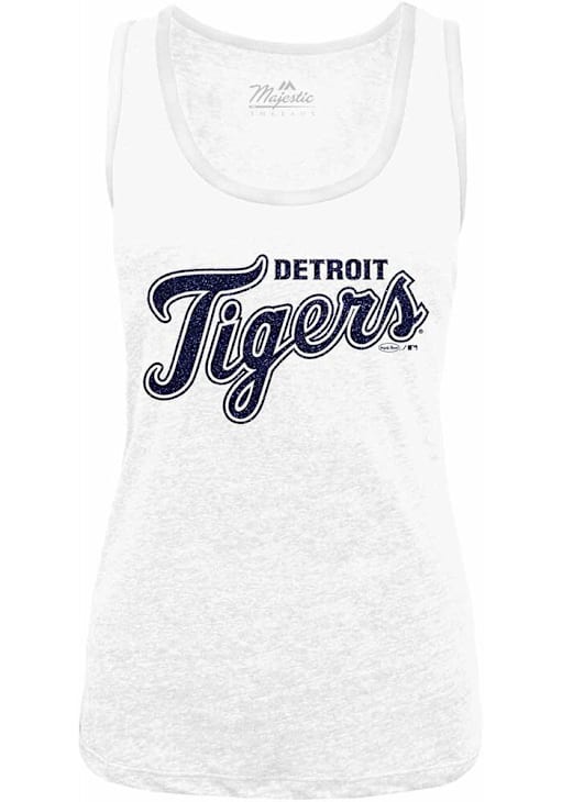 Give your tailgating look a cute update with this Detroit Tigers Womens Tank Top! Look good and stay cool in this White Triblend Contrast Sleeveless Shirt. This Detroit Tigers Tank Top features a team name and logo graphic.