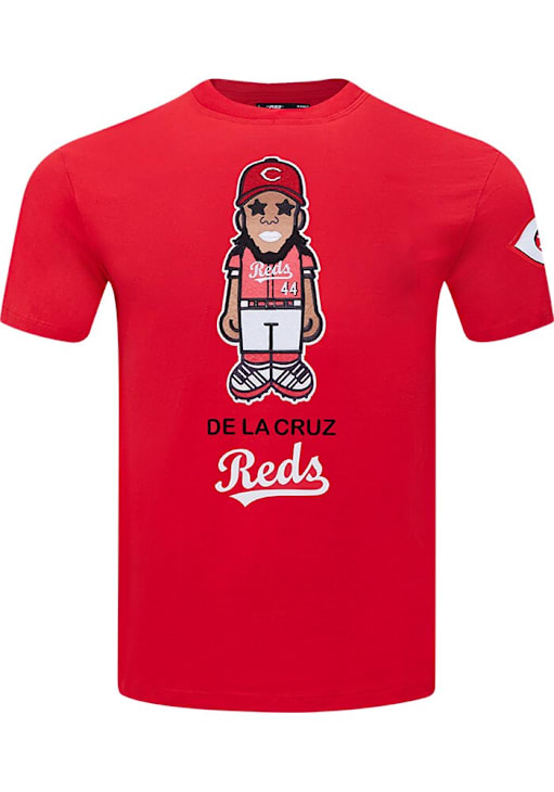 Show support for your favorite player in this Elly De La Cruz Cincinnati Reds Short Sleeve Fashion Player Tee! This Red Fashion Player T Shirt features a Crew neckline with player graphics on front, team logo on left sleeve, so everyone will know you cheer for Cincinnati Reds, Elly De La Cruz! This is the perfect Fashion Player T Shirt for wearing from every day to game day. Go Reds!!