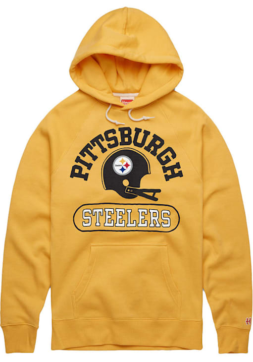 Stay in style while you cheer on the Steelers in this Pittsburgh Steelers Gold Long Sleeve Arch Over Pill Fashion Hood! This Long Sleeve Fashion Hood features a midweight fleece material with a hood, kangaroo pocket and team graphics on the front. It's designed for the ultimate comfort while cheering for Pittsburgh Steelers.