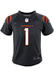 Your little Cincinnati Bengals fan will be the envy of the crowd in this Cincinnati Bengals Baby Black Football Jersey! This Cincinnati Jersey features a screen printed team name and player number on the front and player name and number on the back.