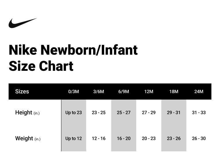 Size Chart for Ja'Marr Chase Cincinnati Bengals Baby Black Nike Home Replica Romper Football Jersey